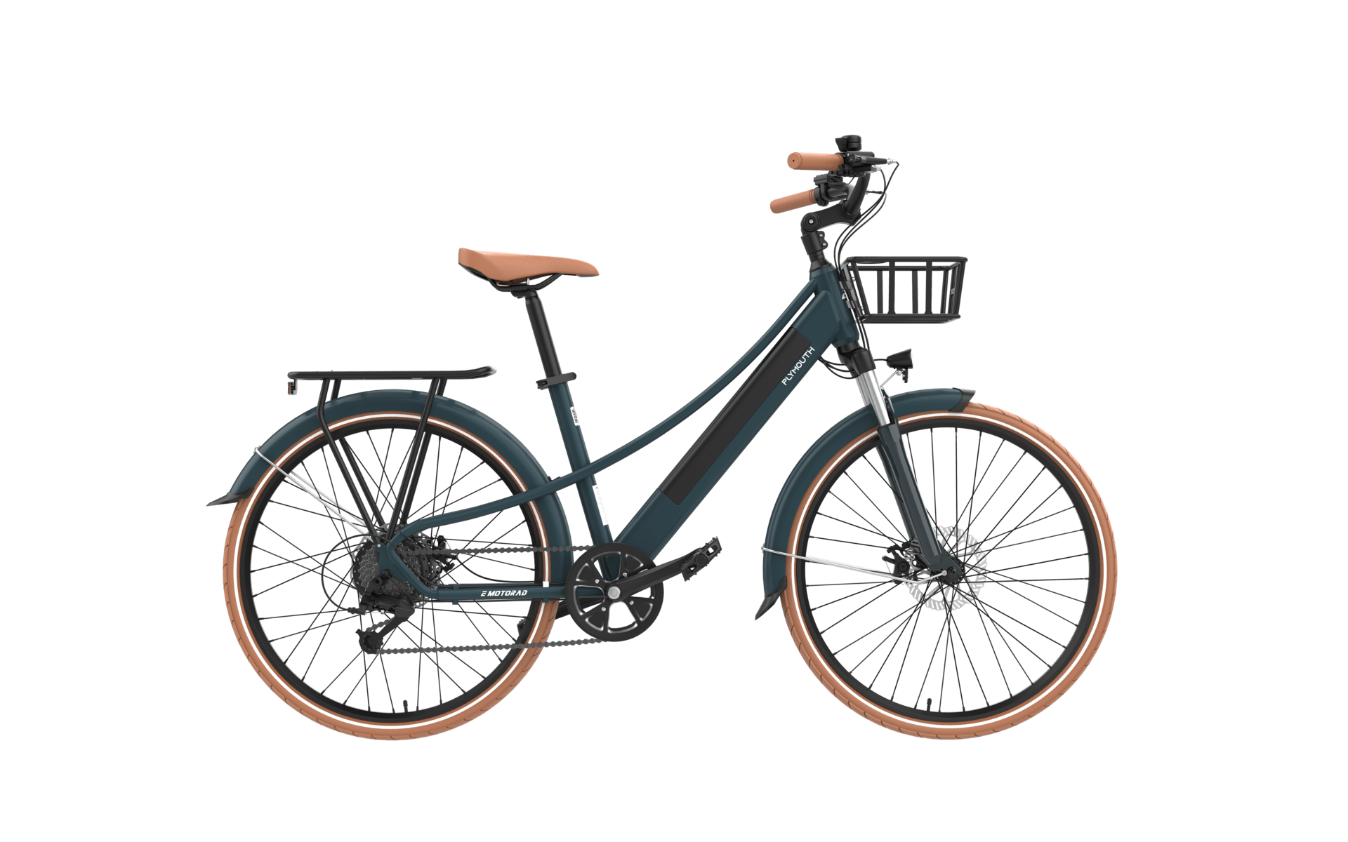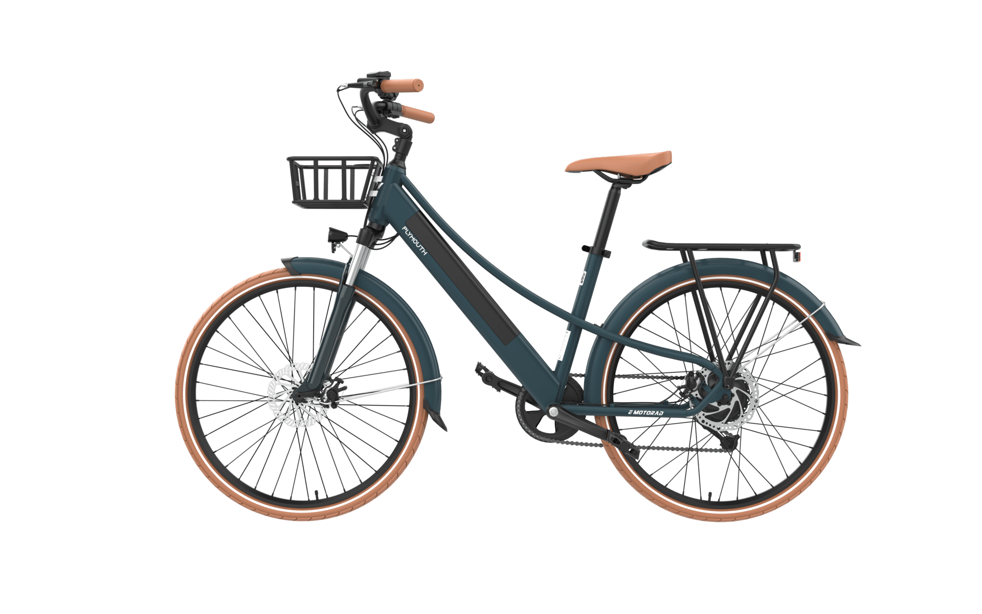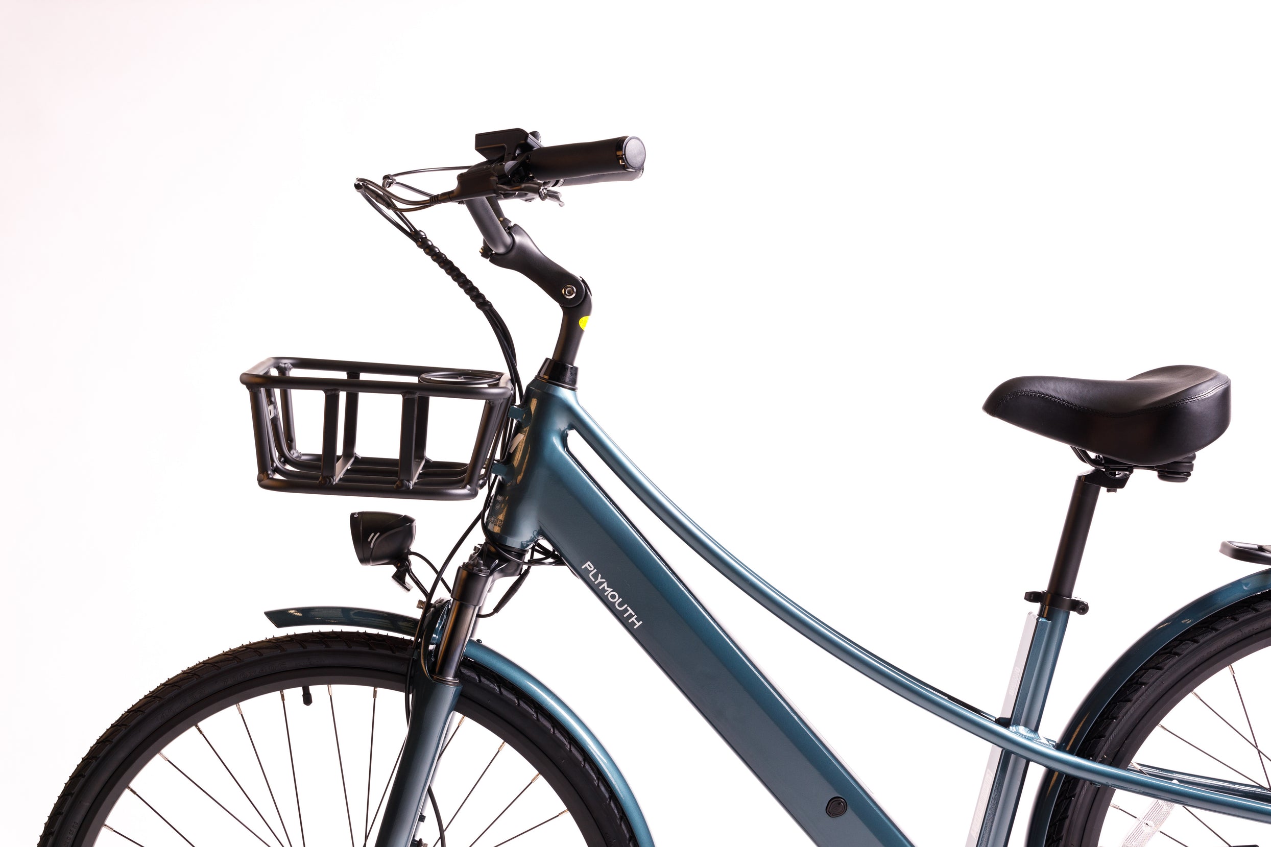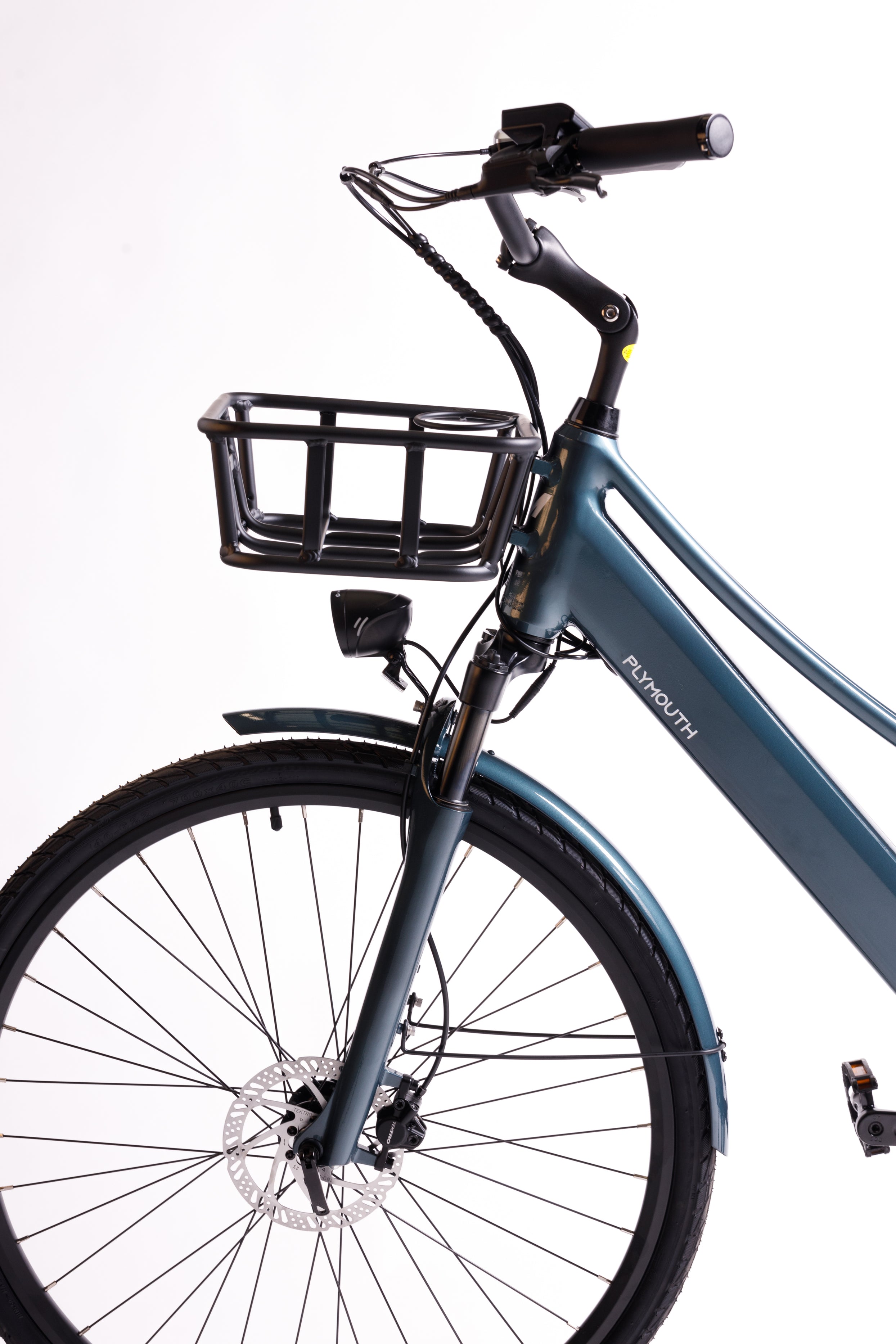 Plymouth è un'e-bike step-through elegante e confortevole, progettata per pedalate fluide in città. Con freni idraulici, cambio Shimano a 7 velocità e un'autonomia di 70 km, è costruito sia per la sicurezza che per la comodità..