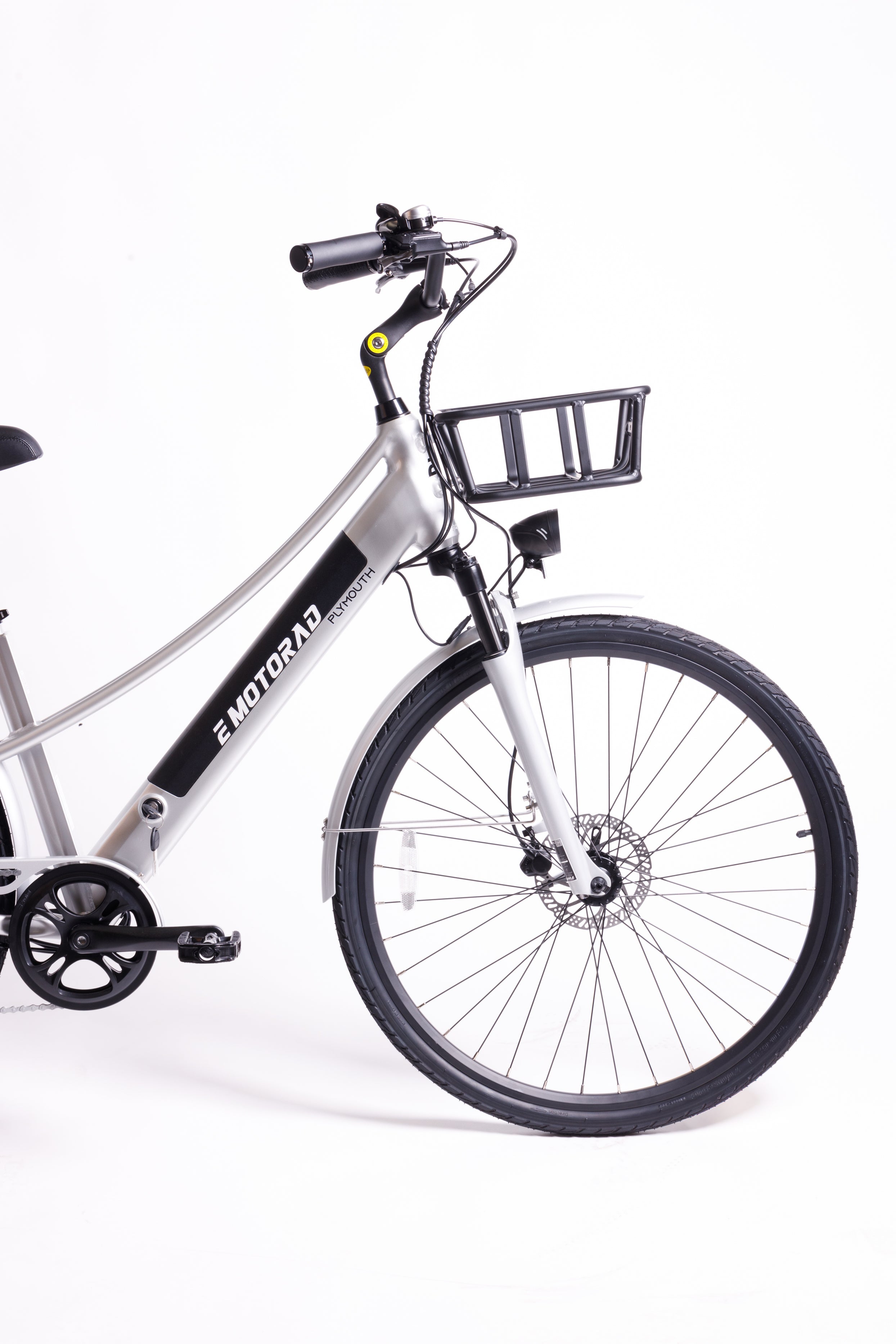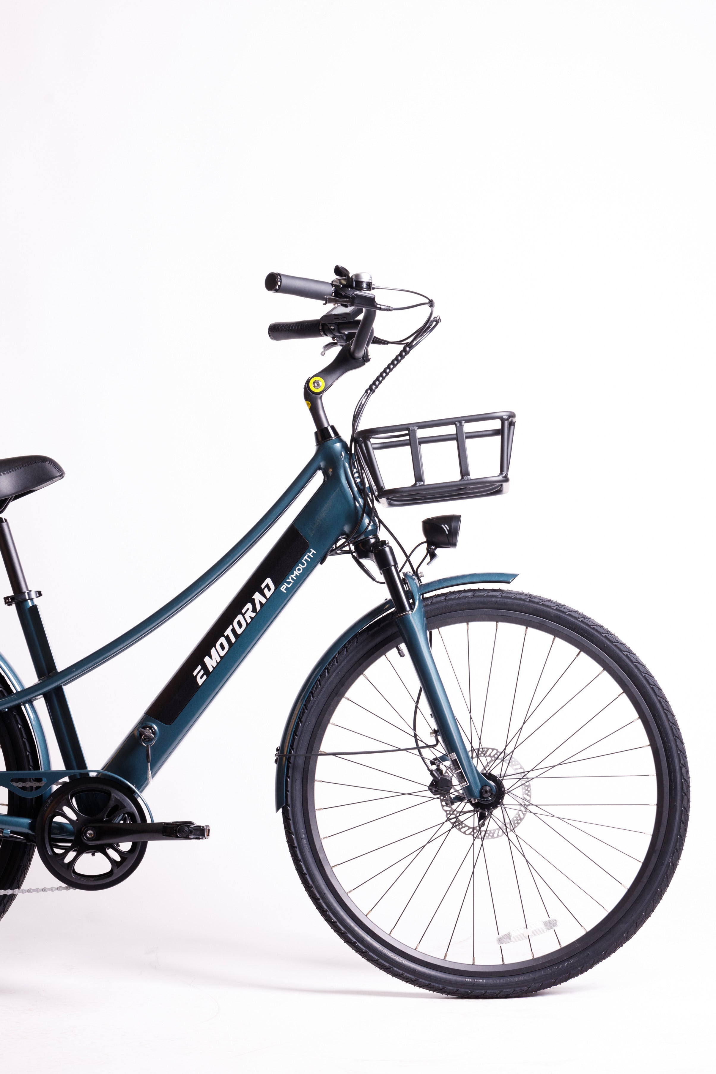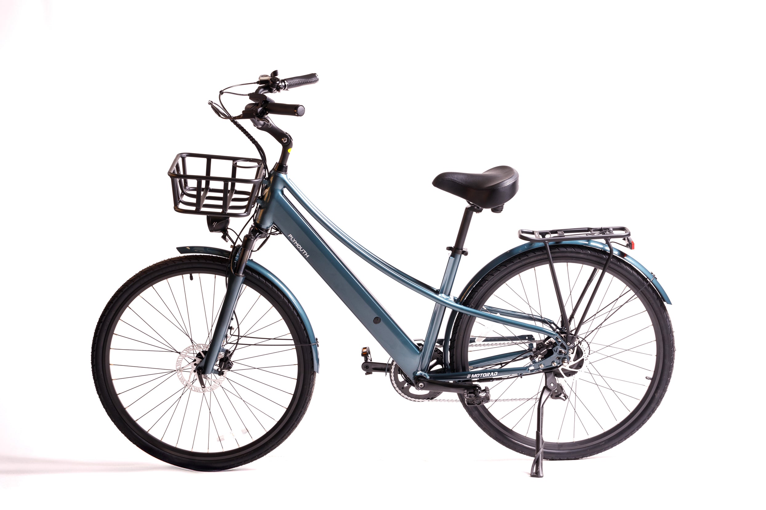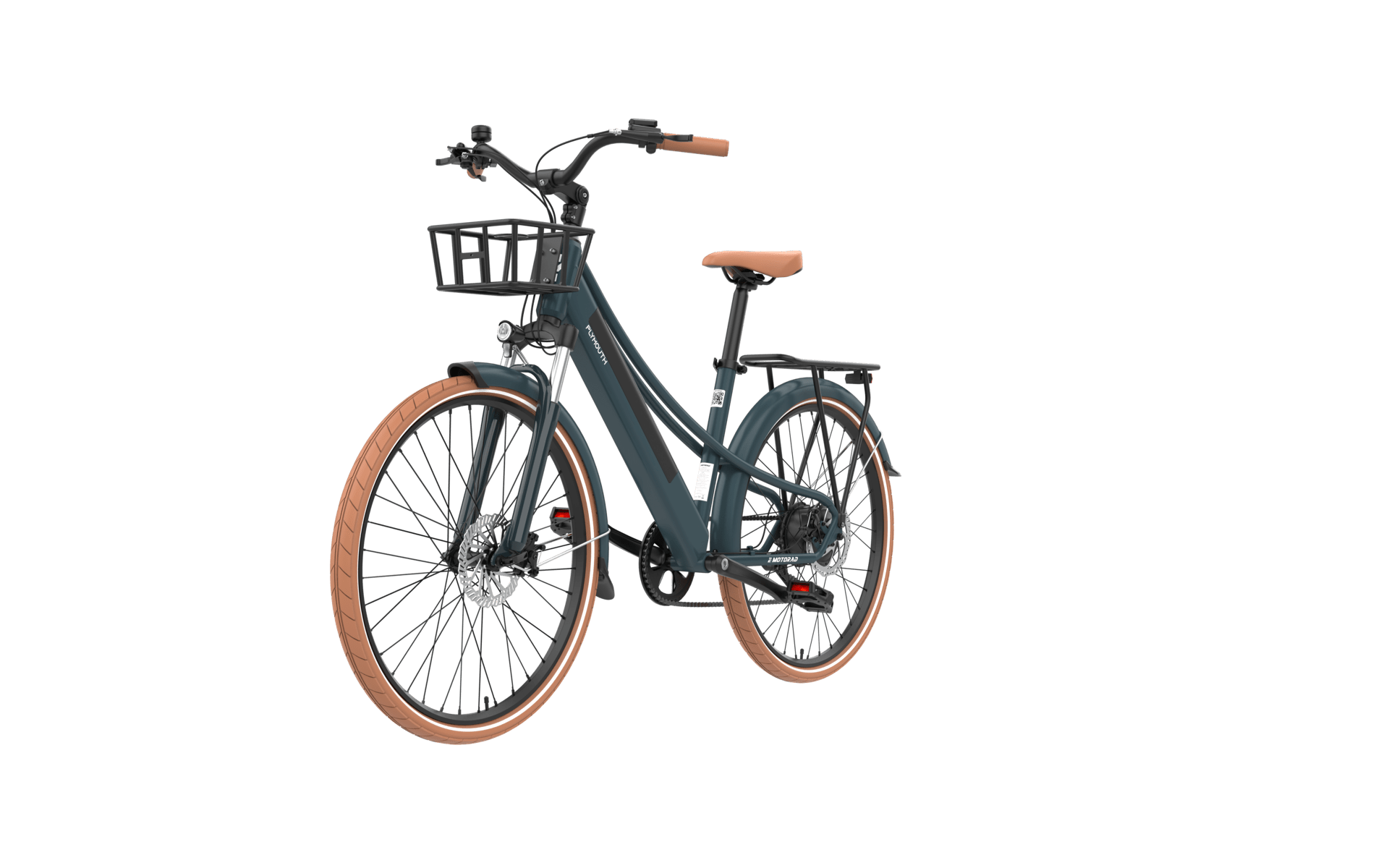 Plymouth è un'e-bike step-through elegante e confortevole, progettata per pedalate fluide in città. Con freni idraulici, cambio Shimano a 7 velocità e un'autonomia di 70 km, è costruito sia per la sicurezza che per la comodità..