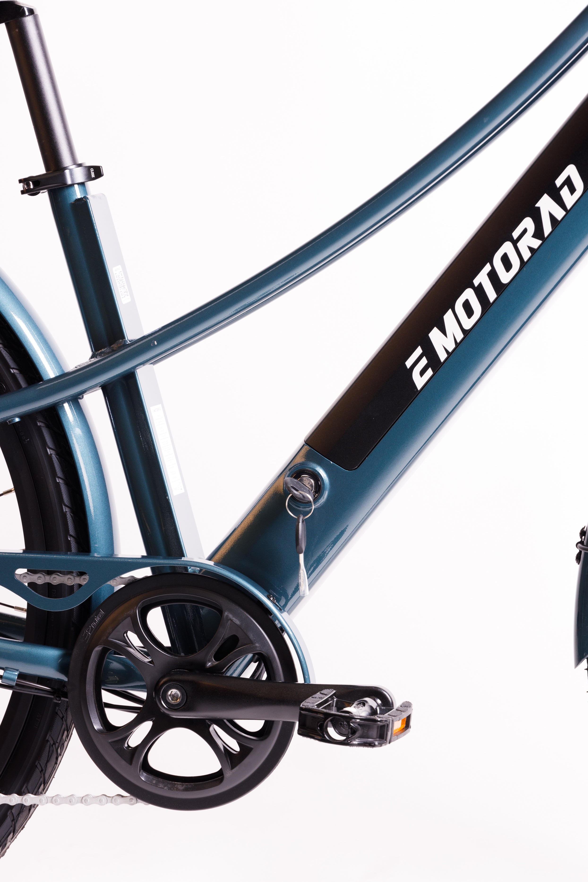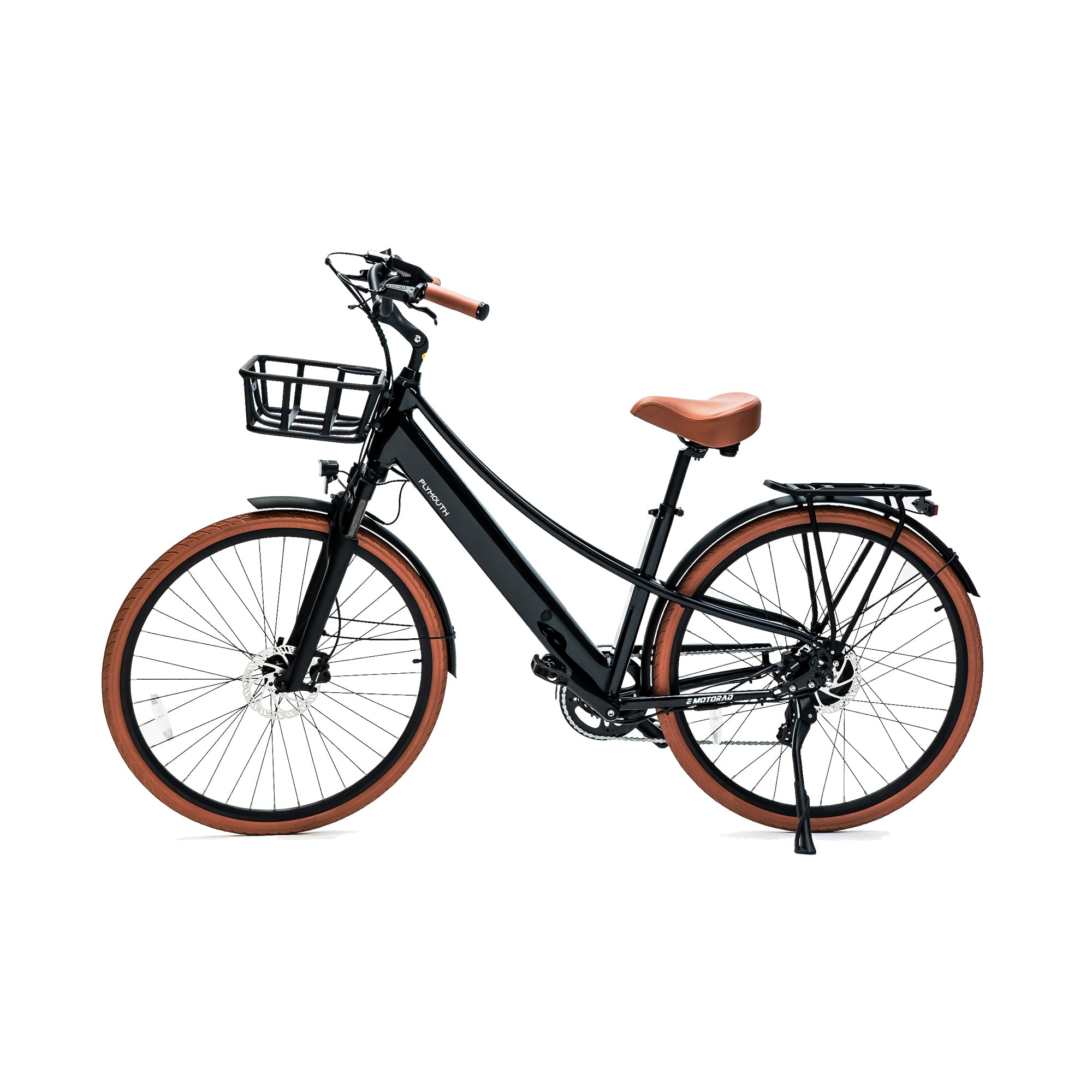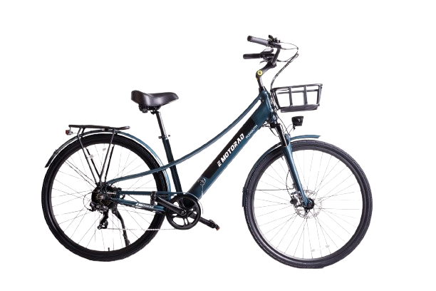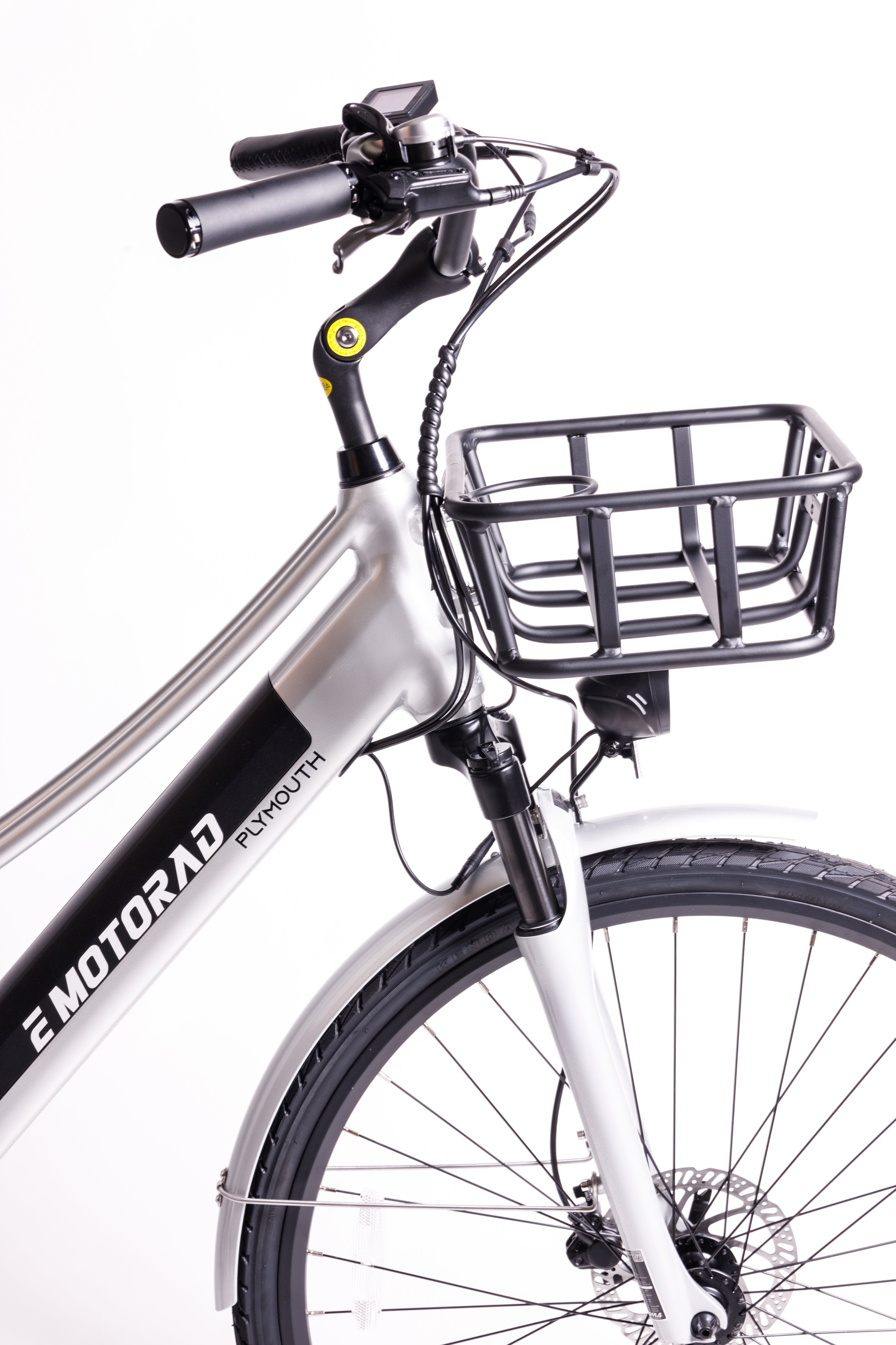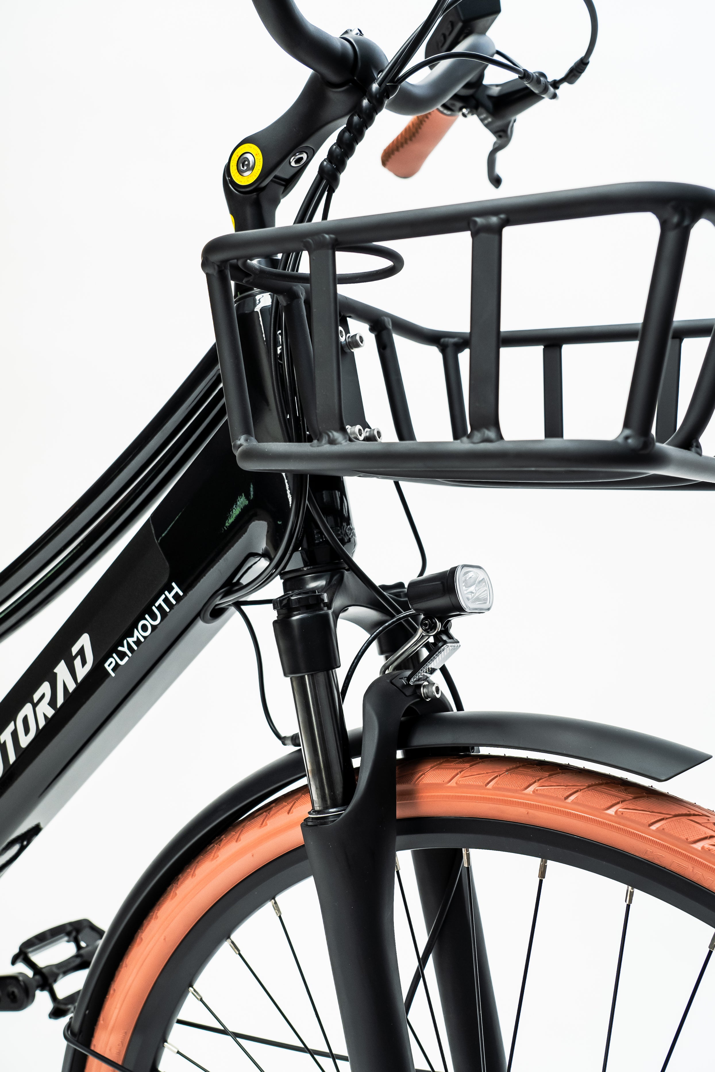 Plymouth è un'e-bike step-through elegante e confortevole, progettata per pedalate fluide in città. Con freni idraulici, cambio Shimano a 7 velocità e un'autonomia di 70 km, è costruito sia per la sicurezza che per la comodità..
