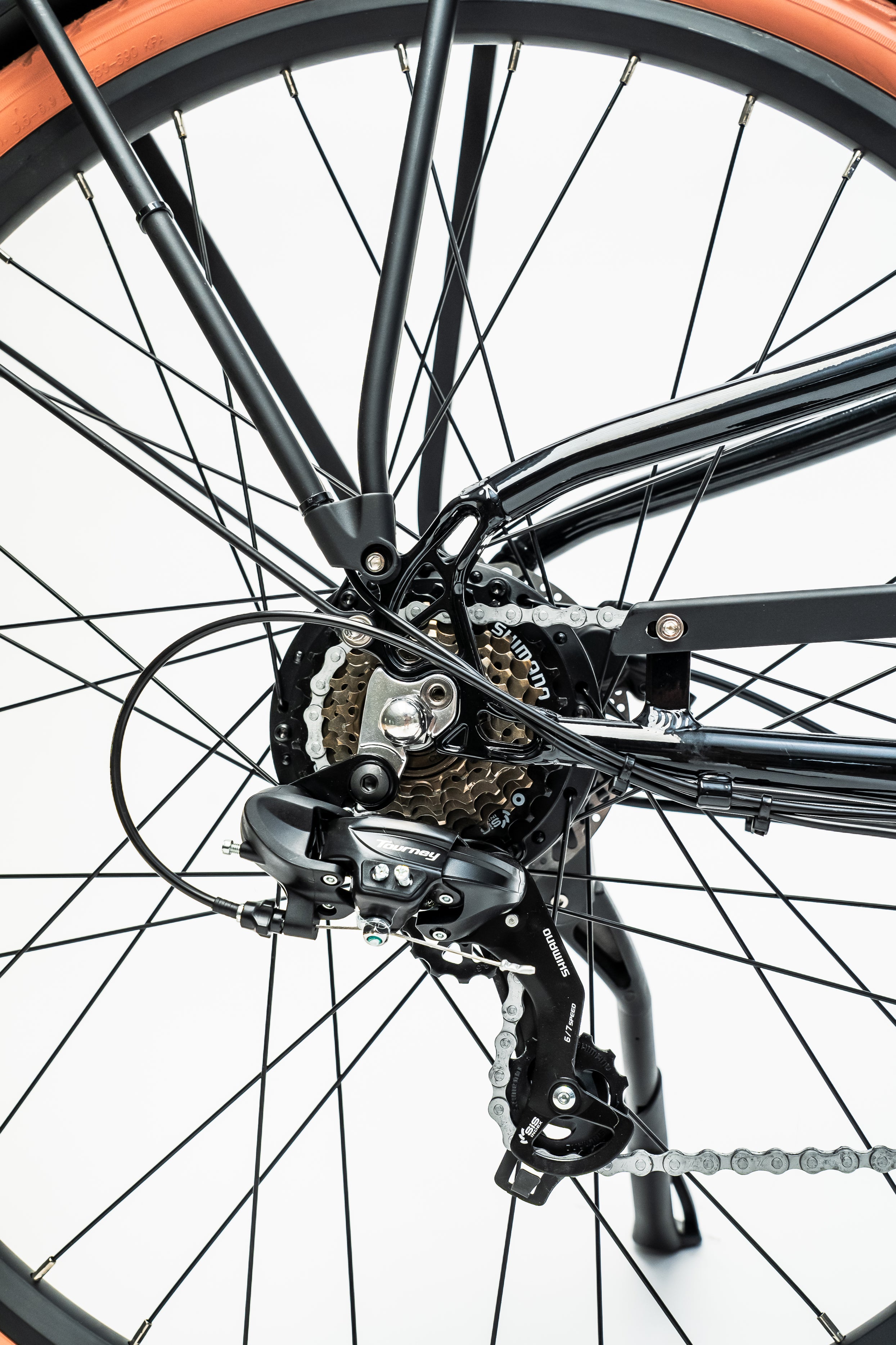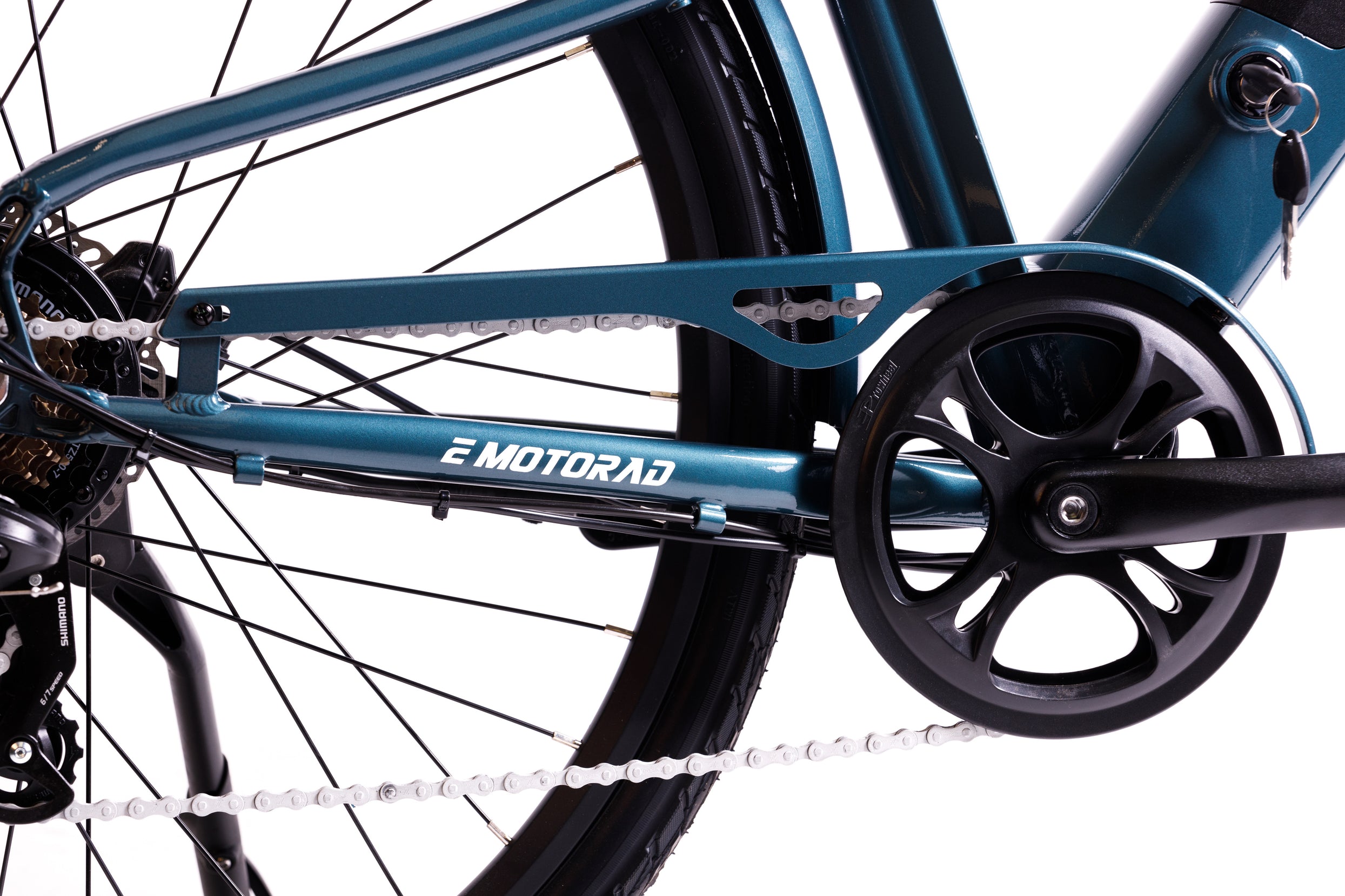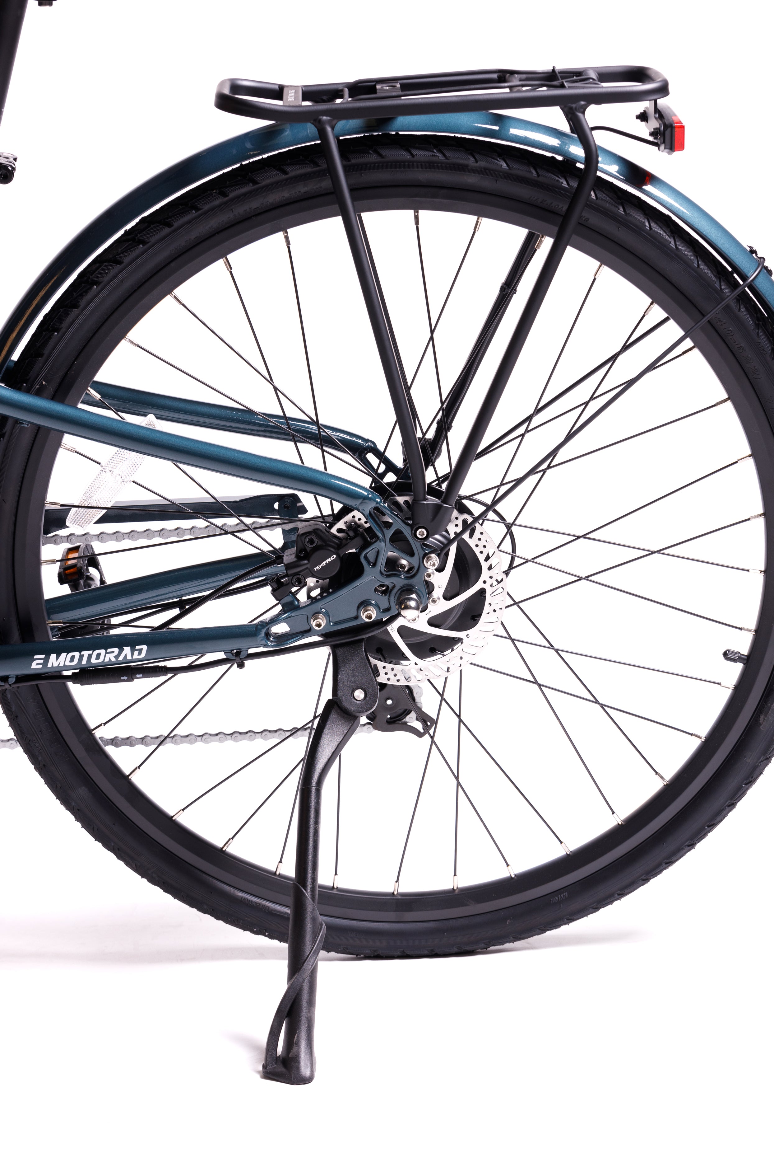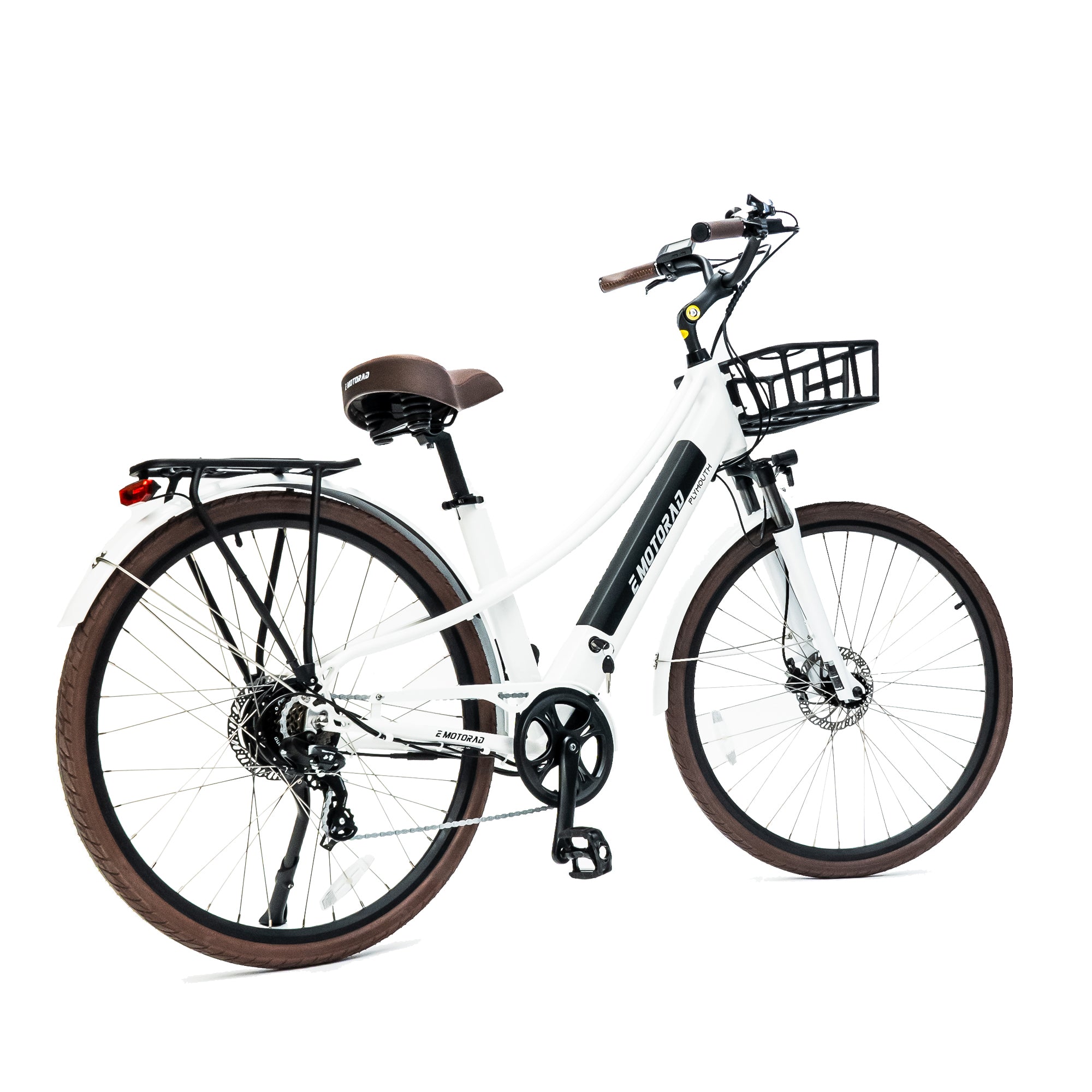 Plymouth è un'e-bike step-through elegante e confortevole, progettata per pedalate fluide in città. Con freni idraulici, cambio Shimano a 7 velocità e un'autonomia di 70 km, è costruito sia per la sicurezza che per la comodità..