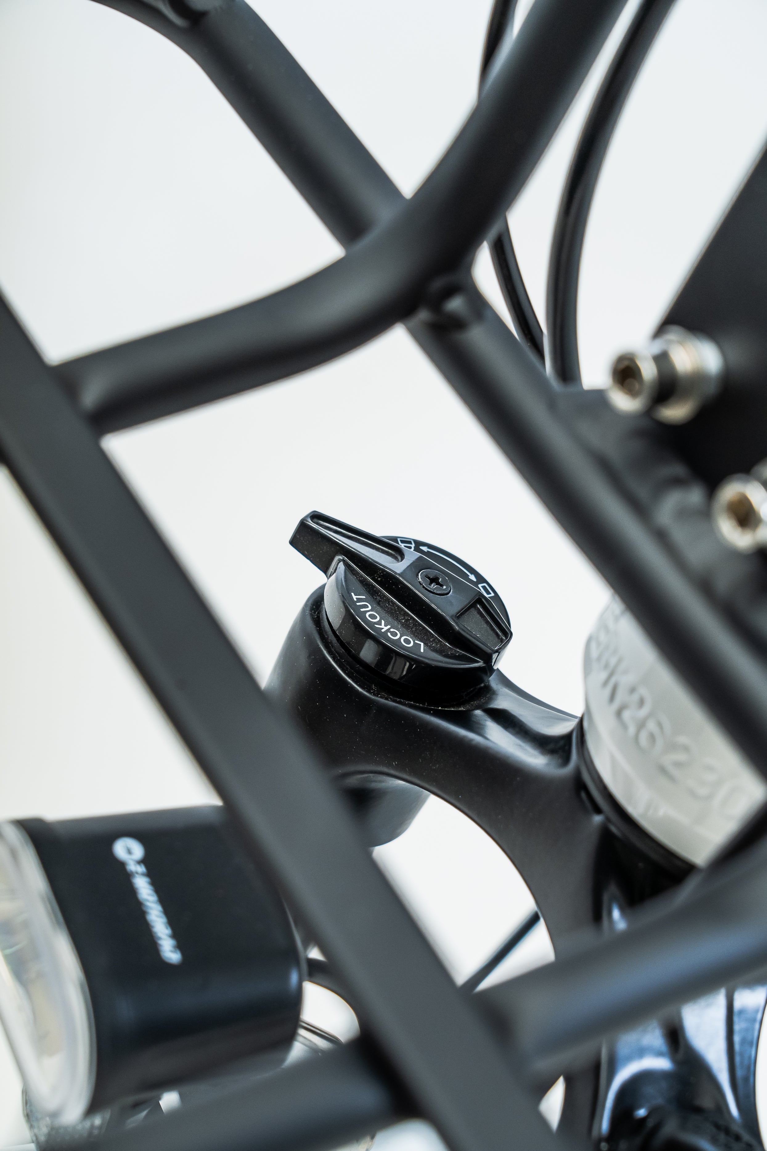 Sospensione in lega di forcella anteriore con viaggio di 50 mm